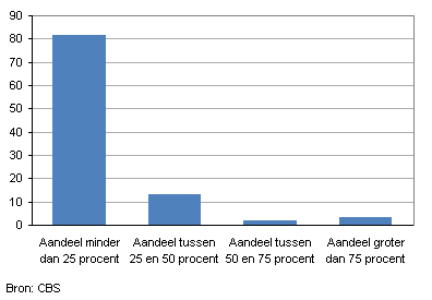 Aandeel bedrijven van de direct geraakte exporteurs onderverdeeld naar aandeel exportwaarde boycotgoederen, 2013