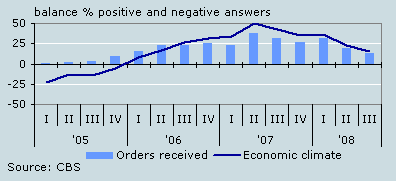 Results from the Business Sentiment Survey of July 2008 show that companies in the business services sector are slightly less confident. According to the entrepreneurs, the increase in orders received has stopped in the second quarter. The opinion on orders received is still positive, but slightly less so than in the preceding quarter. According to the entrepreneurs, selling prices increased a little in the second quarter of 2008. The number of people employed also increased by a shade. The assessment of the entrepreneurs is that the economic climate has weakened somewhat in the second quarter. The sentiment among companies in this sector became a bit less optimistic in the first half of 2008.