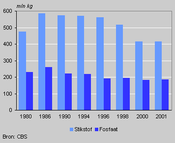 Stikstof- en fosfaatproductie, 1980-2001