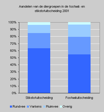 Aandelen van de diergroepen in de fosfaat- en stikstofuitscheiding, 2001