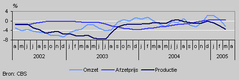 Omzet, productie en prijzen (mei 2002–mei 2005)