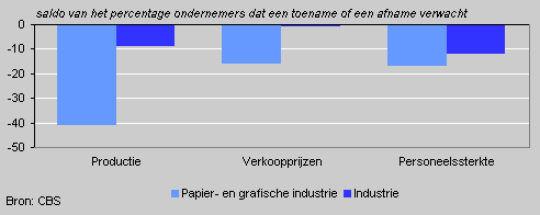 Voor de periode juli tot en met september 2005 verwachten de ondernemers in de papier- en grafische industrie een flinke afname van de productie. Dit is voor het eerst na bijna een half jaar optimisme. Ook in de twee voorgaande maanden verwachtte de ondernemers productiestijgingen. Volgens ondernemers in de papier- en grafische industrie gaat de productieafname gepaard met lagere afzetprijzen.