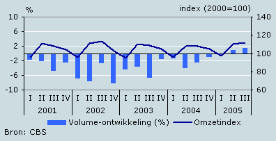 De omzet van restaurants nam in het derde kwartaal van 2005 met 4,2 procent toe in vergelijking met een jaar eerder. Vooral september, met mooi nazomerweer, heeft bijgedragen aan deze kwartaalontwikkeling. De omzet nam in deze maand met 6 procent toe. De prijzen in de restaurants stegen in het derde kwartaal van 2005 met 2 procent. Hierdoor kwam het omzetvolume 2,2 procent hoger uit dan in het derde kwartaal van 2004.
