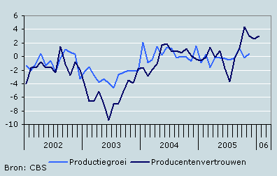 Het producentenvertrouwen in de industrie is in januari 2006 vrijwel onveranderd gebleven en uitgekomen op 3,0.Het vertrouwen is voor de vierde maand op rij relatief hoog. Over hun toekomstige productie en hun voorraadpositie waren de ondernemers beter te spreken dan in de voorafgaande maand, terwijl zij over hun orderpositie minder positief waren. Het aantal ondernemers dat personeel wil inkrimpen, is afgenomen.