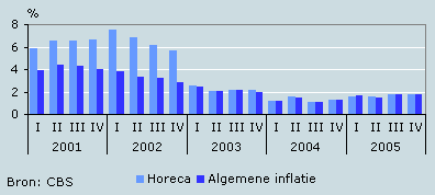 De prijzen in de horeca zijn in het vierde kwartaal van 2005 met 1,8 procent gestegen ten opzichte van dezelfde periode een jaar eerder. Over heel 2005 bedroeg de prijsstijging 1,7 procent. Hiermee is de prijsontwikkeling van de horeca op hetzelfde niveau uitgekomen als de algemene inflatie in Nederland.