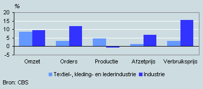 In januari 2006 lag de waarde van de orderontvangsten in de textiel-, kleding- en lederindustrie 3 procent hoger dan in januari 2005. De kledingindustrie noteerde een toename van ruim 4,5 procent en de textielindustrie deed daar met een toename van 4 procent nauwelijks voor onder. Alleen voor de lederindustrie zijn de perspectieven minder gunstig. Daar nam de waarde van de orderontvangsten af met bijna 10 procent.