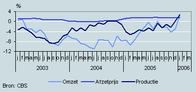 Omzet, productie en prijzen (januari 2003–januari 2006)