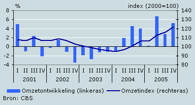 De omzet van de uitzendbranche blijft stijgen. In het vierde kwartaal van 2005 lag de seizoengecorrigeerde omzet ruim 5 procent hoger dan in het kwartaal daarvoor. De kwartalen daaraan voorafgaand zijn ook goede resultaten behaald waardoor de jaaromzet in 2005 ruim 14 procent hoger uitkwam dan in 2004. Nog niet eerder was de jaaromzet van de uitzendbranche zo hoog als in 2005.