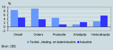 In september 2006 heeft de textiel-, kleding- en lederindustrie goede zaken gedaan. Zowel in euro’s als in volume werden meer producten verkocht. De waarde van de orderontvangst was hoger. Daarnaast was de stijging van de verbruiksprijs en afzetprijs gering. Ten slotte werd in september 2006 meer geproduceerd dan in september van het vorige jaar.