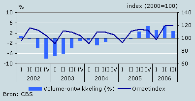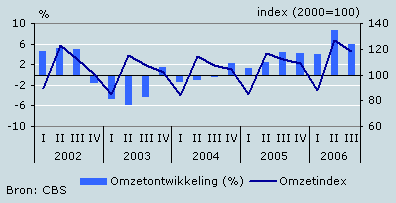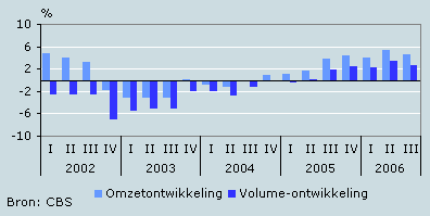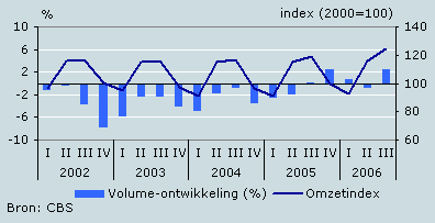 De verkopen in de horeca zijn in het derde kwartaal van 2006 met 2,5 procent toegenomen ten opzichte van dezelfde periode een jaar eerder. Dit is het zesde kwartaal op rij dat het omzetvolume in de horeca is toegenomen, maar de groei was iets lager dan in het tweede kwartaal. De omzet nam met 4,5 procent toe. Het weer kende in het derde kwartaal een grote verscheidenheid: juli was erg heet, augustus overwegend nat en september was een prachtige nazomermaand.