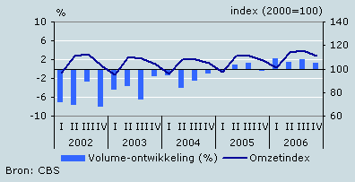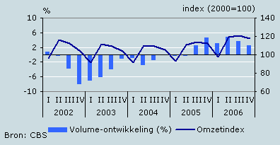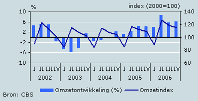 De omzet in de horeca is in het vierde kwartaal van 2006 met 5,3 procent toegenomen ten opzichte van dezelfde periode een jaar eerder. De prijzen stegen met 2,4 procent. De verkopen namen met 2,8 procent toe in vergelijking met het vierde kwartaal van 2005. Over het gehele jaar nam de omzet met 5 procent toe. Dat is bijna een verdubbeling van de groei ten opzichte van een jaar eerder. Vooral de hotels en restaurants hebben in 2006 een grote omzetgroei gerealiseerd. Ook de verkopen zijn met een stijging van 3 procent in 2006 verder toegenomen. Een jaar eerder bedroeg de toename van de verkopen nog maar 1 procent.
