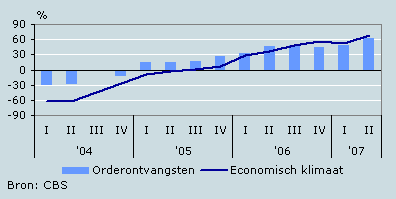 Voor het tweede kwartaal van 2007 zijn de ondernemers zeer optimistisch in hun verwachtingen. Nagenoeg alle ondernemers voorzien een verdere stijging van de orders en opdrachten, slechts 7 procent verwacht gelijkblijvende of dalende orderontvangsten in het tweede kwartaal. Ook de afzetprijzen zullen naar verwachting verder stijgen. Een stijgende omzet ligt daarom in de lijn der verwachtingen. Per saldo verwacht 26 procent van de ondernemers een toename van de personeelssterkte komend kwartaal. De verwachtingen van deze branche zijn nog optimistischer dan de verwachtingen in de gehele zakelijke dienstverlening.