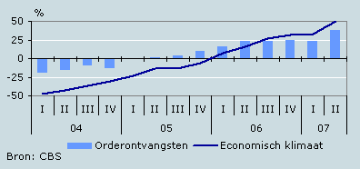 Voor het tweede kwartaal van 2007 zijn de ondernemers zeer optimistisch in hun verwachtingen. Er wordt een verdere stijging van de orders voorzien, per saldo denkt bijna de helft van de ondernemers meer orders te ontvangen. De verwachting is dan ook dat de omzet verder zal toenemen in het tweede kwartaal. De ondernemers verwachten de komende maanden een stijging van de afzetprijzen, het aantal ondernemers dat dit verwacht is echter een stuk lager dan vorig kwartaal. De ondernemers zijn zeer optimistisch over de toekomstige personeelssterkte, 41 procent verwacht een uitbreiding, terwijl slechts 5 procent een daling voorziet. Al deze optimistische verwachtingen zijn breed gedragen. Alleen de ondernemers in de schoonmaakbranche zijn duidelijk een stuk minder positief over de toekomstige orders en omzetontwikkeling.