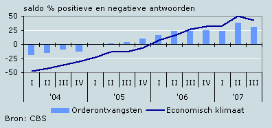 Voor het derde kwartaal van 2007 zijn de ondernemers optimistisch in hun verwachtingen, maar wel iets minder dan vorig kwartaal. Ze verwachten wel weer een verdere stijging van de orders. Per saldo denkt bijna 30 procent van de ondernemers meer orders te ontvangen. De verwachting is dan ook dat de omzet verder zal toenemen in het derde kwartaal. De ondernemers denken dat de afzetprijzen de komende maanden gaan stijgen. Ze zijn zeer optimistisch over de toekomstige personeelssterkte, 37 procent verwacht een uitbreiding, terwijl slechts 7 procent een daling voorziet. Al deze optimistische verwachtingen worden breed gedragen. Alleen de ondernemers in de reclamebranche zijn duidelijk een stuk minder positief, vooral over de toekomstige order- en omzetontwikkeling.