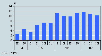 De omzet van de zakelijke dienstverleners is in het derde kwartaal opnieuw sterk gegroeid. De verschillen tussen de diverse branches blijven echter groot. De stemming onder de ondernemers blijft uiterst positief. De oordelen zijn nog altijd goed te noemen en in hun verwachtingen voor het vierde kwartaal van 2007 zijn de ondernemers optimistisch. Dit optimisme is nu al bijna twee jaar aanwezig.