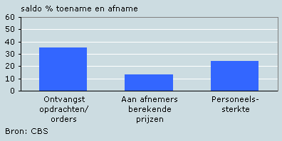 Voor het vierde kwartaal van 2007 blijven de ondernemers optimistisch in hun verwachtingen, maar ze zijn wel iets minder verwachtingsvol dan vorig kwartaal. Er wordt een verdere stijging van de orders voorzien. Per saldo denkt bijna 35 procent van de ondernemers meer orders te ontvangen. Ook voorzien ze de komende maanden een stijging van de afzetprijzen. De verwachting is dan ook dat de omzet verder zal toenemen in het vierde kwartaal. De ondernemers zijn zeer optimistisch over de toekomstige personeelssterkte: 29 procent verwacht een uitbreiding, terwijl slechts 5 procent een daling voorziet. Verder geeft 41 procent van de ondernemers aan dat een tekort aan arbeidskrachten een mogelijke belemmering is voor hun activiteiten.