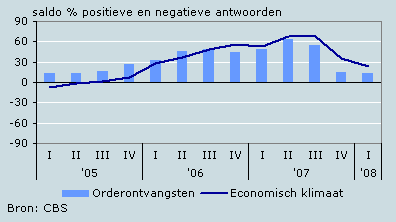 De ondernemers zijn iets optimistischer in hun verwachtingen voor het eerste kwartaal van 2008. Per saldo 34 procent van de ondernemers verwacht een verdere stijging van de orders en opdrachten. Ook de afzetprijzen zullen naar verwachting verder stijgen, maar liefst 66 procent verwacht hogere afzetprijzen in het eerste kwartaal. De ondernemers verwachten ook een stijgende omzet. Per saldo verwacht 15 procent van de ondernemers een toename van de personeelssterkte komend kwartaal. Een half jaar terug was dit saldo nog 45 procent.