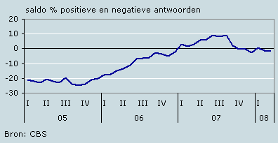 De koopbereidheid van consumenten veranderde nauwelijks in het eerste kwartaal en kwam in maart 2008 uit op -2. Er waren net wat meer pessimisten dan optimisten. De koopbereidheid is gebaseerd op de vraag of de tijd gunstig is voor het doen van grote aankopen en op het oordeel over de eigen financiële situatie. Consumenten werden in de eerste drie maanden van het jaar iets negatiever over het doen van grote aankopen. Over de eigen financiële situatie in de twaalf maanden ervoor waren ze juist wat minder negatief. Het financiële vooruitzicht veranderde nauwelijks.
