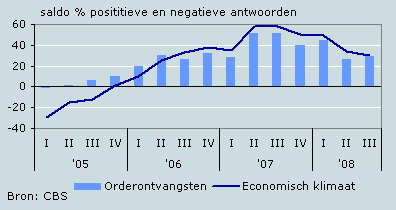 Uit de conjunctuurtest van juli 2008 blijkt dat de ondernemers in deze branche nog altijd positief gestemd zijn. Volgens de ondernemers zijn de orderontvangsten in het tweede kwartaal verder toegenomen. Het oordeel over deze orderontvangsten is dan ook positiever dan in het vorige kwartaal. Volgens de ondernemers zijn de aan afnemers berekende afzetprijzen iets toegenomen in het tweede kwartaal. Ook is de personeelssterkte verder toegenomen. Het oordeel over het economische klimaat is positief, maar wel wat minder dan in voorgaande kwartalen.