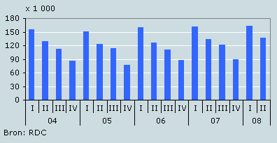 In het tweede kwartaal van 2008 werden 6 300 nieuwe motorfietsen verkocht. Dat is een stijging van ruim 3 procent ten opzichte van dezelfde periode in 2007. De verkoop van motorfietsen is dit jaar vroeg van start gegaan. Het droge en zonnige weer in de eerste twee kwartalen heeft mogelijk bijgedragen aan de goede verkoopresultaten voor de eerste helft van 2008.