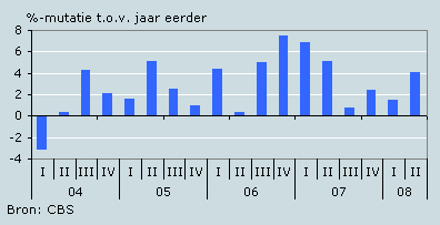 In het tweede kwartaal van 2008 was de omzet van de autoservicebedrijven ruim 4 procent hoger dan een jaar eerder. De groei was zelfs hoger dan in het eerste kwartaal van 2008. Dit is opvallend, want de meeste branches in de totale motor- en autobranche hadden slechts een geringe groei of zelfs een daling. Waarschijnlijk leverden de vorstdagen eind maart en begin april van dit jaar een bijdrage aan de stijgende vraag naar autoservicediensten in het tweede kwartaal.