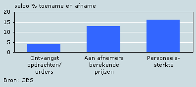 Voor het derde kwartaal van 2008 zijn de ondernemers minder optimistisch in hun verwachtingen dan voorgaande kwartalen. Er wordt geen verdere stijging van de orders voorzien. Wel voorzien de ondernemers de komende maanden licht hogere afzetprijzen. De ondernemers blijven optimistisch over de toekomstige personeelssterkte, 24 procent verwacht een uitbreiding, terwijl slechts 8 procent een daling voorziet. Verder geeft circa 40 procent van de ondernemers aan dat een tekort aan arbeidskrachten een mogelijke belemmering is voor hun activiteiten.