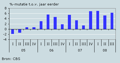 In het derde kwartaal van 2008 heeft de detailhandel een bescheiden omzetgroei behaald. De omzet was 2,5 procent hoger dan in hetzelfde kwartaal een jaar eerder. Deze groei ligt in lijn met die in het tweede kwartaal van dit jaar. De groei werd vrijwel geheel veroorzaakt door een stijging van de prijzen. Het omzetvolume groeide nauwelijks.