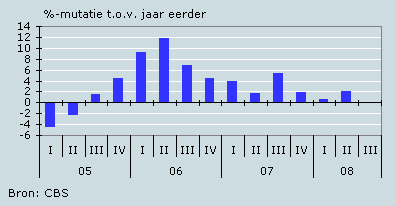 In het derde kwartaal van 2008 behaalde de detailhandel een bescheiden omzetgroei in vergelijking met hetzelfde kwartaal van 2007. De koopbereidheid van consumenten nam iets af in het derde kwartaal. Het aantal openstaande vacatures in de detailhandel bleef onverminderd hoog. Onder invloed van hogere prijzen, hadden winkels in voedings- en genotmiddelen fors meer omzet dan een jaar eerder.