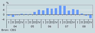 De omzet van de horeca is in het vierde kwartaal 3 procent lager uitgekomen dan in dezelfde periode een jaar eerder. Dit is het tweede opeenvolgende kwartaal dat de omzet afnam, maar de daling was nu beduidend groter dan voorgaand kwartaal. De stemming onder de ondernemers is in het vierde kwartaal verder verslechterd. Zo is het oordeel over het economische klimaat flink negatiever dan het vorige kwartaal. De ondernemers blijven ook pessimistisch in hun verwachtingen voor het eerste kwartaal van 2009.