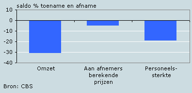 De ondernemers zijn pessimistisch in hun verwachtingen voor het eerste kwartaal van 2009. Per saldo verwacht 30 procent van de ondernemers een afname in de omzet. De afzetprijzen zullen naar verwachting in het eerste kwartaal gaan dalen. Verder verwachten de ondernemers een flinke afname van de personeelssterkte in het eerste kwartaal van 2009.