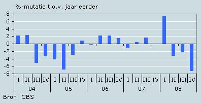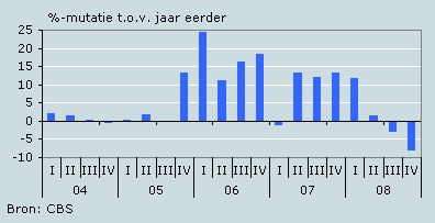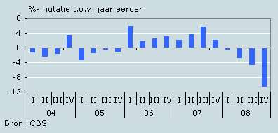 In het afsluitende kwartaal van 2008 kwam de omzet van de motor- en autobranche ruim 11 procent lager uit ten opzichte van hetzelfde kwartaal een jaar eerder. De omzetdaling van het tweede en derde kwartaal zette hiermee in het vierde kwartaal van 2008 versterkt door. De motor- en autobranche heeft sinds jaren niet meer met zo’n sterke omzetdaling te kampen gehad. De autoservicebedrijven boekten dit kwartaal als enige branche in de totale motor- en autobranche wel een positief resultaat.