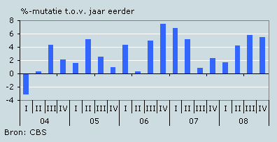 De personenautobranche werd voor het vierde achtereenvolgende kwartaal geconfronteerd met een omzetdaling. De omzet in het vierde kwartaal viel bijna 11 procent lager uit dan in hetzelfde kwartaal een jaar eerder. Het dalende consumentenvertrouwen en de verslechterde economische situatie bezorgden de personenautobranche zware tijden in 2008. Over het hele jaar 2008 nam de omzet in deze branche met 4,5 procent af.