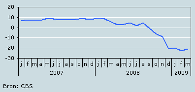 De ondernemers in de industrie zijn een tikje minder somber geworden. In maart steeg het producentenvertrouwen met 2,1 punten tot -20,8. Vooral over de toekomstige productie waren de ondernemers minder pessimistisch. In februari stond de vertrouwensindicator met -22,9 nog op het laagste niveau ooit. Na de scherpe daling in de laatste vier maanden van 2008 was het producentenvertrouwen in de eerste drie maanden van 2009 betrekkelijk stabiel.