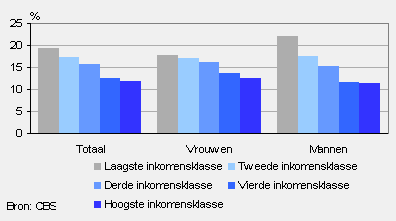 Ouderen (50 jaar of ouder) met een lager inkomen maken meer gebruik van AWBZ-gefinancierde zorg zonder verblijf dan ouderen met een hoger inkomen. Bij vrouwen is dit verschil groter dan bij mannen. Ongeveer 28 procent van de vrouwelijke 50-plussers uit de laagste inkomensklasse maakte in 2004-2006 gebruik van zorg zonder verblijf. Bij de oudere vrouwen in de hoogste inkomensklasse lag dat aandeel slechts opp 4 procent. Bij de mannen van 50 jaar of ouder varieerde dit van 14 procent bij de laagste inkomens tot 2 procent bij de hoogste inkomens.
