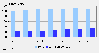 Nederland heeft het afgelopen jaar 35 miljoen spijkerbroeken met een waarde van 847 miljoen euro ingevoerd. Dit zijn er 3,5 miljoen meer (+11 procent) dan in 2007 en zelfs 50 procent meer dan zes jaar geleden. De totale invoer van lange broeken is in 2008 echter met 2 procent afgenomen in vergelijking met een jaar eerder. Ten opzichte van 6 jaar geleden is de invoer van lange broeken met 9 procent toegenomen.