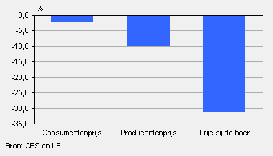 In juli 2009 betaalden consumenten voor melk 2,3 procent minder dan een jaar eerder. De producentenprijs bij de zuivelonderneming daalde nog harder en was in juli bijna 10 procent lager dan in juli 2008. De melkprijs bij de boer daalde met ruim 31 procent echter het sterkst. Wel wordt slechts een klein percentage van de door de boeren geproduceerde melk verkocht als consumptiemelk.