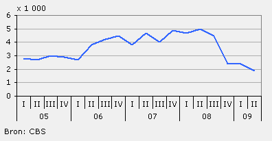 In het eerste kwartaal van 2009 stonden er nog ongeveer 2400 vacatures open. In vergelijking met het eerste kwartaal is het aantal vacatures in het tweede kwartaal van 2009 met 21 procent gedaald.