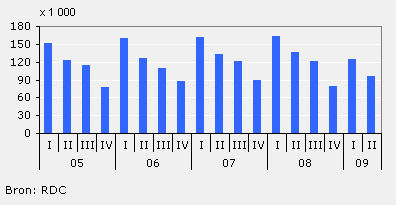 In het tweede kwartaal van 2009 is het aantal verkochte nieuwe personenauto’s sterk afgenomen ten opzichte van dezelfde periode het jaar ervoor. In het tweede kwartaal van 2009 werden bijna 97 duizend nieuwe auto’s verkocht. Dit aantal bedroeg in het tweede kwartaal van 2008 nog zo’n 136 duizend. Er werden dus bijna 30 procent minder auto’s verkocht.