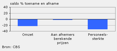 Ook voor het derde kwartaal van 2009 zijn de ondernemers pessimistisch in hun verwachtingen. Per saldo verwacht bijna een kwart van de ondernemers dat de omzet in het derde kwartaal zal dalen. De verwachtingen over de toekomstige personeelssterkte zijn eveneens negatief. Slechts 7 procent verwacht een uitbreiding, terwijl 41 procent een daling voorziet.