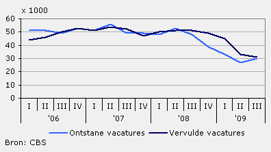 In de zakelijke dienstverlening ontstonden in het derde kwartaal 30 duizend vacatures. Dit is een daling van 38 procent in vergelijking met het derde kwartaal van 2008. In alle branches in de zakelijke dienstverlening liep de vraag naar personeel terug. In het derde kwartaal werden 31 duizend vacatures vervuld, in dezelfde periode van 2008 waren dat er nog 51 duizend. Aan het eind van het derde kwartaal waren er bijna 23 duizend openstaande vacatures. In vergelijking met een jaar eerder is het aantal openstaande vacatures meer dan gehalveerd. De computerservicebedrijven hadden de grootste relatieve daling . Aan het eind van het derde kwartaal stonden hier 3 900 vacatures open, bijna 65 procent minder dan in hetzelfde kwartaal een jaar eerder.