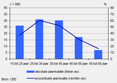 In de periode augustus-oktober 2009 lag de werkloosheid 111 duizend personen hoger dan een jaar eerder. Er geldt: hoe jonger de leeftijdsgroep, hoe sterker de toename van de werkloosheid tot dusver is geweest. Uitzondering hierop zijn de 15 tot 25-jarigen, waar de toename in een jaar tijd kleiner is dan onder de 25 tot 35-jarigen en de 35 tot 45-jarigen. Dit komt mogelijk doordat jongeren uitwijkmogelijkheden hebben door wat langer naar school te gaan. De 45-plussers en vooral de 55-plussers zijn tot nog toe het minst getroffen door de recessie. Deze groep heeft vaak vaste en lange dienstverbanden waardoor zij minder snel hun baan verliezen.