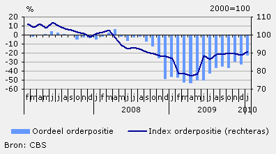 2) index orderpositie = ontvangen orders uitgedrukt in maanden werk, geïndexeerd