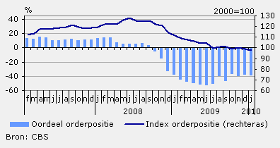 2) index orderpositie = ontvangen orders uitgedrukt in maanden werk, geïndexeerd