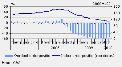 2) index orderpositie = ontvangen orders uitgedrukt in maanden werk, geïndexeerd