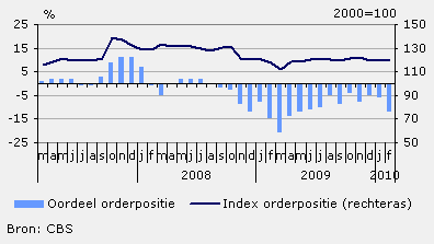 Uit de Conjunctuurtest van februari 2010 blijkt dat de ondernemers hun orderpositie hebben zien krimpen. Er heerst echter wel een optimistische stemming over de verwachtingen voor de komende periode. Dit geldt met name over de te verwachten productie en de afzetprijzen. De ondernemers blijven wel pessimistisch gestemd over de werkgelegenheid.