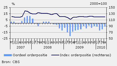 Uit de Conjunctuurtest van april 2010 blijkt dat de ondernemers evenveel orders in portefeuille hebben als in de maand maart. Zij zijn voor de komende drie maanden optimistisch over de productie; er wordt een toename voorzien. De ondernemers zijn nog steeds pessimistisch gestemd over de werkgelegenheid.