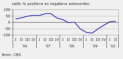 In hun verwachtingen voor het tweede kwartaal van 2010 zijn de ondernemers erg optimistisch. Per saldo verwacht de helft van de ondernemers een stijging van de omzet. Ook verwacht per saldo één op de vier ondernemers dat de werkgelegenheid gaat toenemen. Daarmee zijn de ondernemers in de uitzendbranche positiever in hun verwachtingen over de personeelssterkte en omzet dan de totale zakelijke dienstverlening.