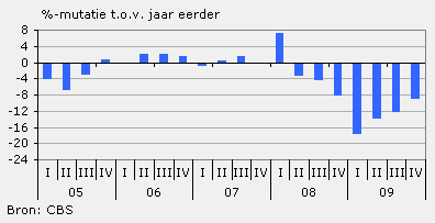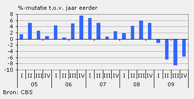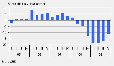 De omzet in de auto- en motorbranche is in het vierde kwartaal van 2009 met ruim 11 procent gekrompen ten opzichte van hetzelfde kwartaal een jaar eerder. Met een omzetdaling van ruim 20 procent vielen in de bedrijfsautobranche de hardste klappen.