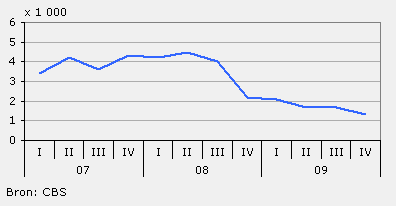 In het vierde kwartaal van 2009 stonden er 1 600 vacatures open in de auto- en motorbranche. Dit is één derde minder dan in datzelfde kwartaal in 2008. Toen stonden er nog 2 400 vacatures open.