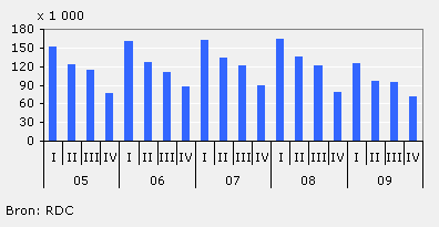 In het vierde kwartaal van 2009 werden ruim 1 300 nieuwe motorfietsen verkocht. Dat is duidelijk minder dan in het vierde kwartaal van 2008. Toen reden er nog bijna 1 600 nieuwe motoren de showroom uit. De verkoop van motoren is sterk seizoensgebonden. In het laatste kwartaal van het jaar worden altijd minder motorfietsen verkocht dan in de overige kwartalen.